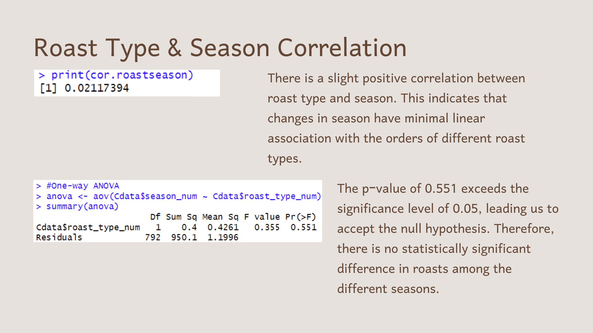 There is no statistically significant difference in roasts among the different seasons.