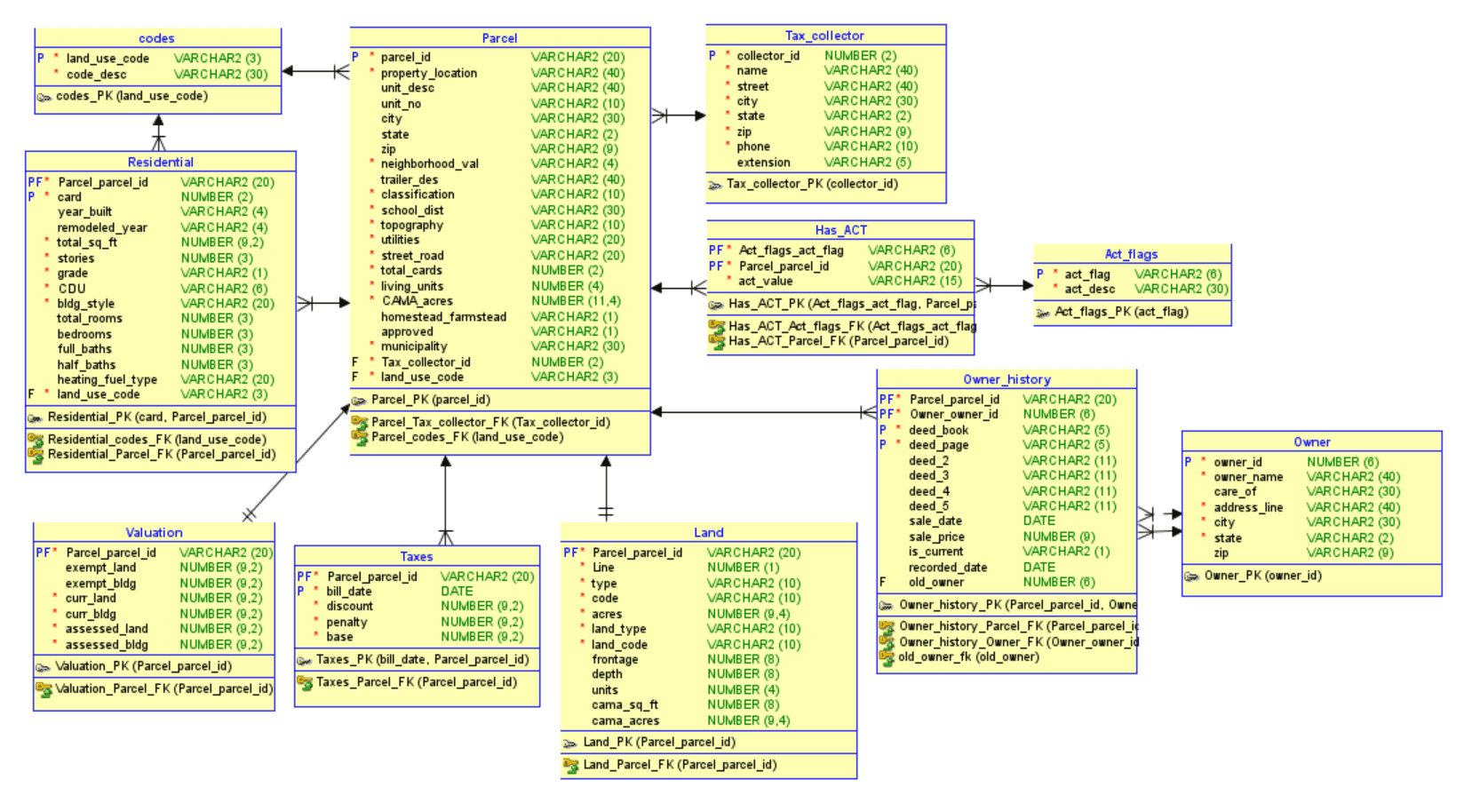 Entity-Relationship Diagram (ERD): I was tasked with creating an ERD based on the Northampton County Assessment website. This involved identifying and modeling the various entities and relationships within the real estate data.